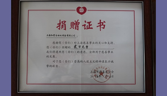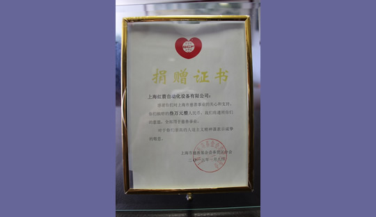 2016年,上海紅箭自動(dòng)化設(shè)備有限公司為上海市慈善基金會(huì)捐款